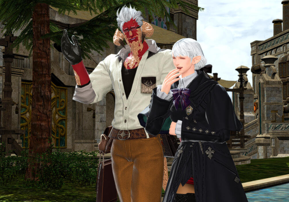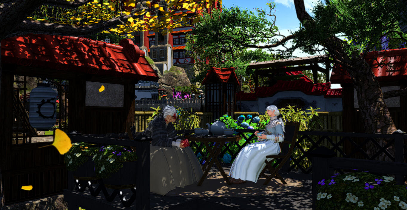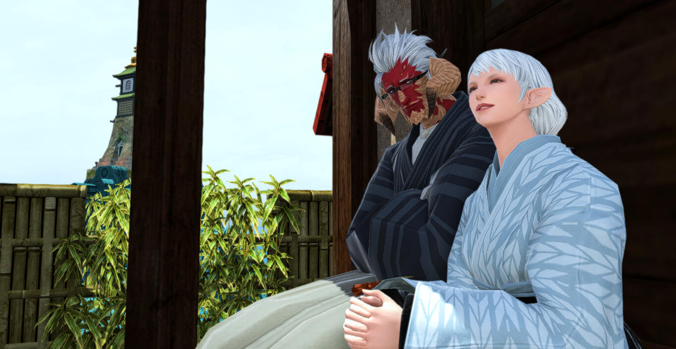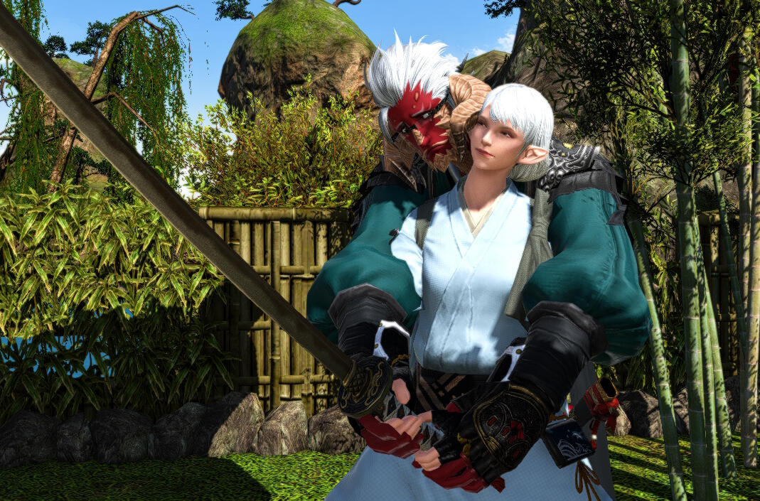 He was so blindly proud of his son that he didn't notice young Akitsu's struggling with keeping up with the family's expectations...On that same year, that is 25 years prior to ARR, the Garlean Empire invaded Doma. Akitsu was called to fight for his lord, while Kuwagata and Hotarubi stayed to protect their village from the imperials.The only thing that returned to them was Akitsu’s katana broken in half…Kuwagata completely broke down, his son’s death drowned him in guilt. He blamed himself for pushing his son into becoming a samurai, for placing such a hard duty on his young shoulders...He even considered taking his own life to go with his son, but…he couldn’t. Committing seppuku would have only dishonored his son’s memory. He had nothing to be punished for, on the contrary, he as a father should have been proud of it, as it was the most honorable death a samurai could have had. But he couldn't accept that. Visions of an injured Akitsu, captured by the imperials, tormented him day and night (he didn't know that it was the Echo).Hotarubi although, she was sure that Kuwagata's visions were the will of the kami guiding them, telling them that their son was still alive. Staying in Doma would only end up with both dead or worse, so she took his grieving husband with her and fled to Hingashi. Settled near Kugane, Hotarubi took any job she could to provide for her family and helping any Doman refugees while looking for info about Akitsu. Over time, Kuwagata got some of his spirit back to take care of the house and work and his aging wife, although the grief for his son never left him.Years passed, and Hotarubi grew old and fragile. In her last moments, she made Kuwagata promise to her that he would go find their son. That she was sure Akitsu was alive somewhere, and Kuwagata shouldn’t live the rest of his life in regret. She made him promise her that he would live, for her and for their son. Kuwagata promised he would honor her wish.After the proper mourning period, Kuwagata found out that some Doman refugees had fled to Eorzea, so he decided to travel there.The rest of it it's just Kuwagata coincidentally being in the right place at the right moment. He didn't have any interest in politics, so he just followed Alphinaud around while he was looking for info on his son. He asked around in every city he had been, but no hints of him...although he had always known his son was gone. But he did it anyway, because he promised his wife.