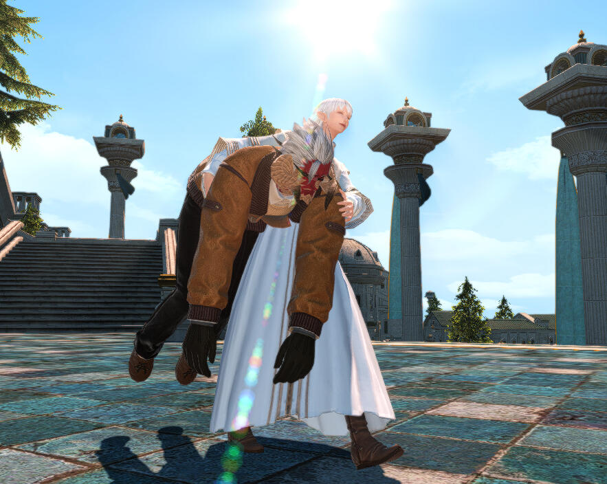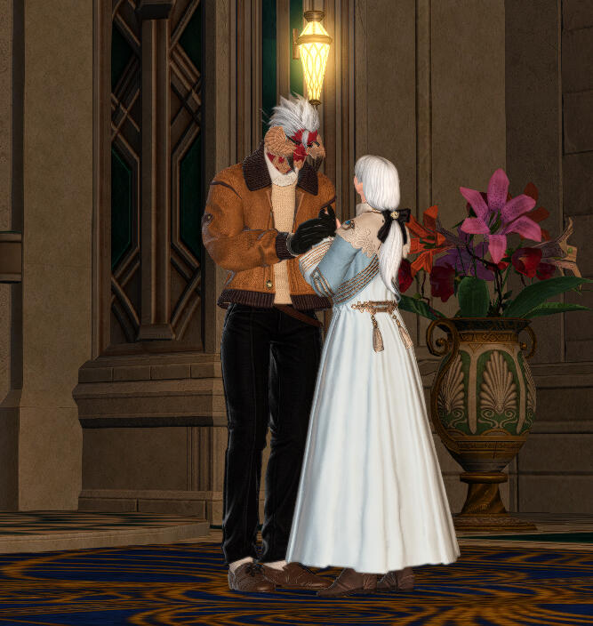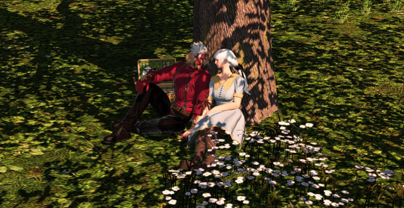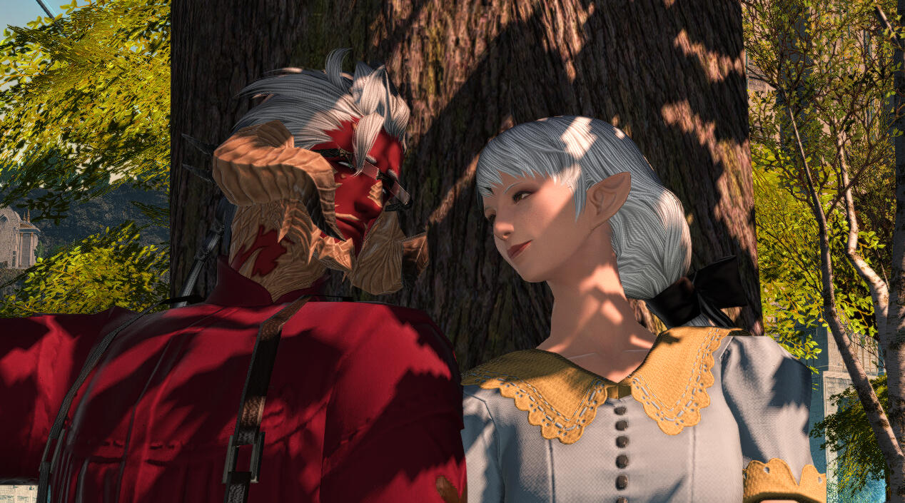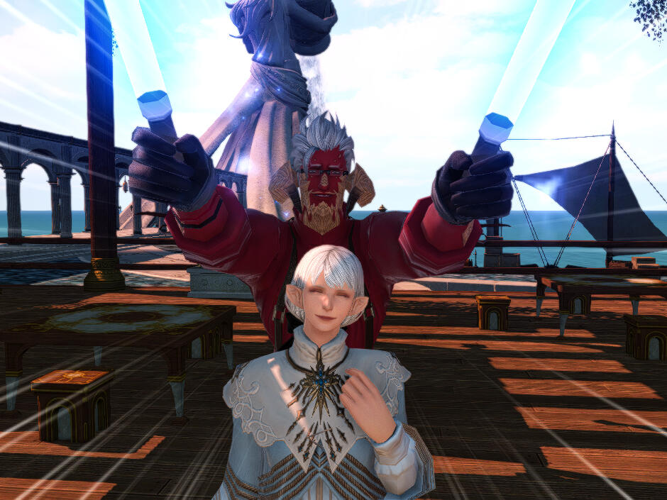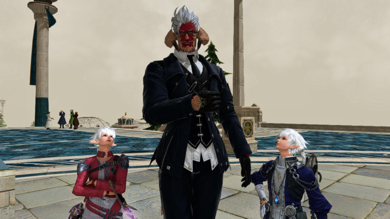 He was so blindly proud of his son that he didn't notice young Akitsu's struggling with keeping up with the family's expectations...On that same year, that is 25 years prior to ARR, the Garlean Empire invaded Doma. Akitsu was called to fight for his lord, while Kuwagata and Hotarubi stayed to protect their village from the imperials.The only thing that returned to them was Akitsu’s katana broken in half…Kuwagata completely broke down, his son’s death drowned him in guilt. He blamed himself for pushing his son into becoming a samurai, for placing such a hard duty on his young shoulders...He even considered taking his own life to go with his son, but…he couldn’t. Committing seppuku would have only dishonored his son’s memory. He had nothing to be punished for, on the contrary, he as a father should have been proud of it, as it was the most honorable death a samurai could have had. But he couldn't accept that. Visions of an injured Akitsu, captured by the imperials, tormented him day and night (he didn't know that it was the Echo).Hotarubi although, she was sure that Kuwagata's visions were the will of the kami guiding them, telling them that their son was still alive. Staying in Doma would only end up with both dead or worse, so she took his grieving husband with her and fled to Hingashi. Settled near Kugane, Hotarubi took any job she could to provide for her family and helping any Doman refugees while looking for info about Akitsu. Over time, Kuwagata got some of his spirit back to take care of the house and work and his aging wife, although the grief for his son never left him.Years passed, and Hotarubi grew old and fragile. In her last moments, she made Kuwagata promise to her that he would go find their son. That she was sure Akitsu was alive somewhere, and Kuwagata shouldn’t live the rest of his life in regret. She made him promise her that he would live, for her and for their son. Kuwagata promised he would honor her wish.After the proper mourning period, Kuwagata found out that some Doman refugees had fled to Eorzea, so he decided to travel there.The rest of it it's just Kuwagata coincidentally being in the right place at the right moment. He didn't have any interest in politics, so he just followed Alphinaud around while he was looking for info on his son. He asked around in every city he had been, but no hints of him...although he had always known his son was gone. But he did it anyway, because he promised his wife.